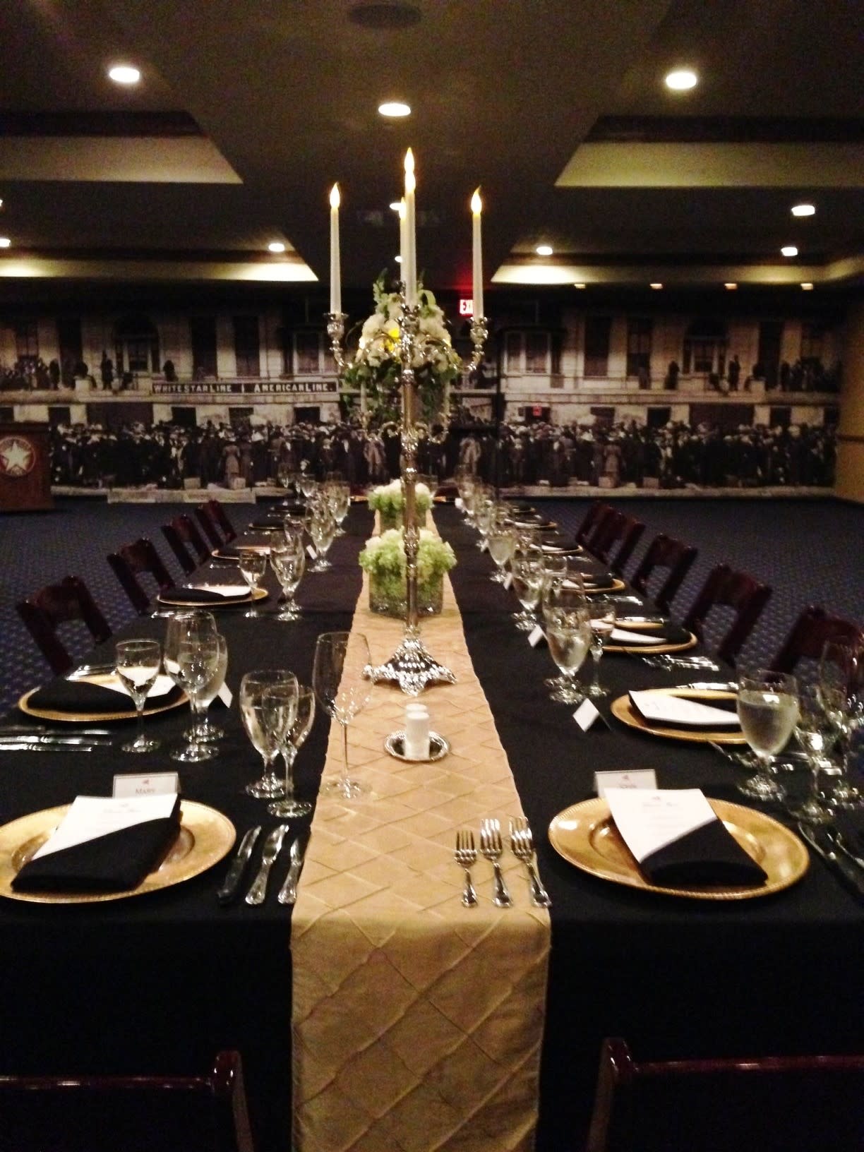 Create memorable experiences for your private event at TITANIC Museum Attraction’s “Secret Dining Room!” Whether it’s a Corporate Board Meeting, an Employee “thank you” event, a company Holiday Party, Birthday, Wedding or Anniversary Party, Titanic is the unique event space you’ve been looking for! We can accommodate up to 130 people with round or long tables, with or without a meal, or classroom/board meeting style layouts. Audio visual equipment provided.